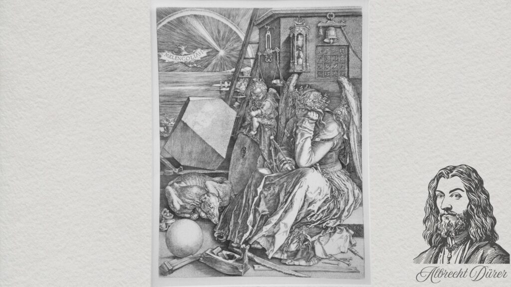 Unfortunately for all of us, Dürer’s Melencolia I remains one of the most extensively analyzed and debated artworks in Western art history, largely because Dürer himself never offered any clues about the thoughts and feelings that gave rise to this enigmatic piece. Over the centuries, its reception by art critics, historians, and philosophers has traveled a winding path of interpretation, traversing allegorical, philosophical, psychological, and even esoteric realms.